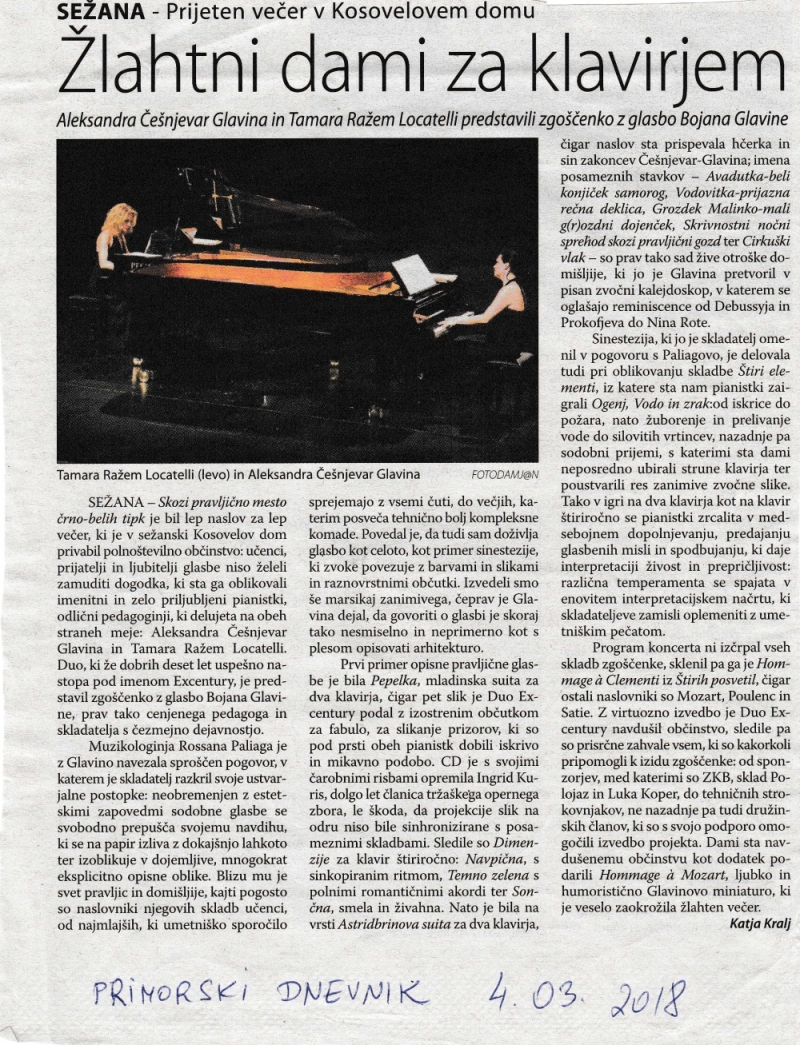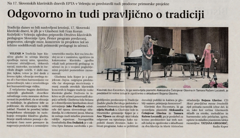 Primorski dnevnik članek Duo Excentury na Dunaju - slovenski skladatelji